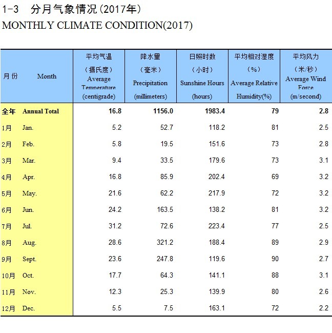 1-3 分月气象情况(2017年)