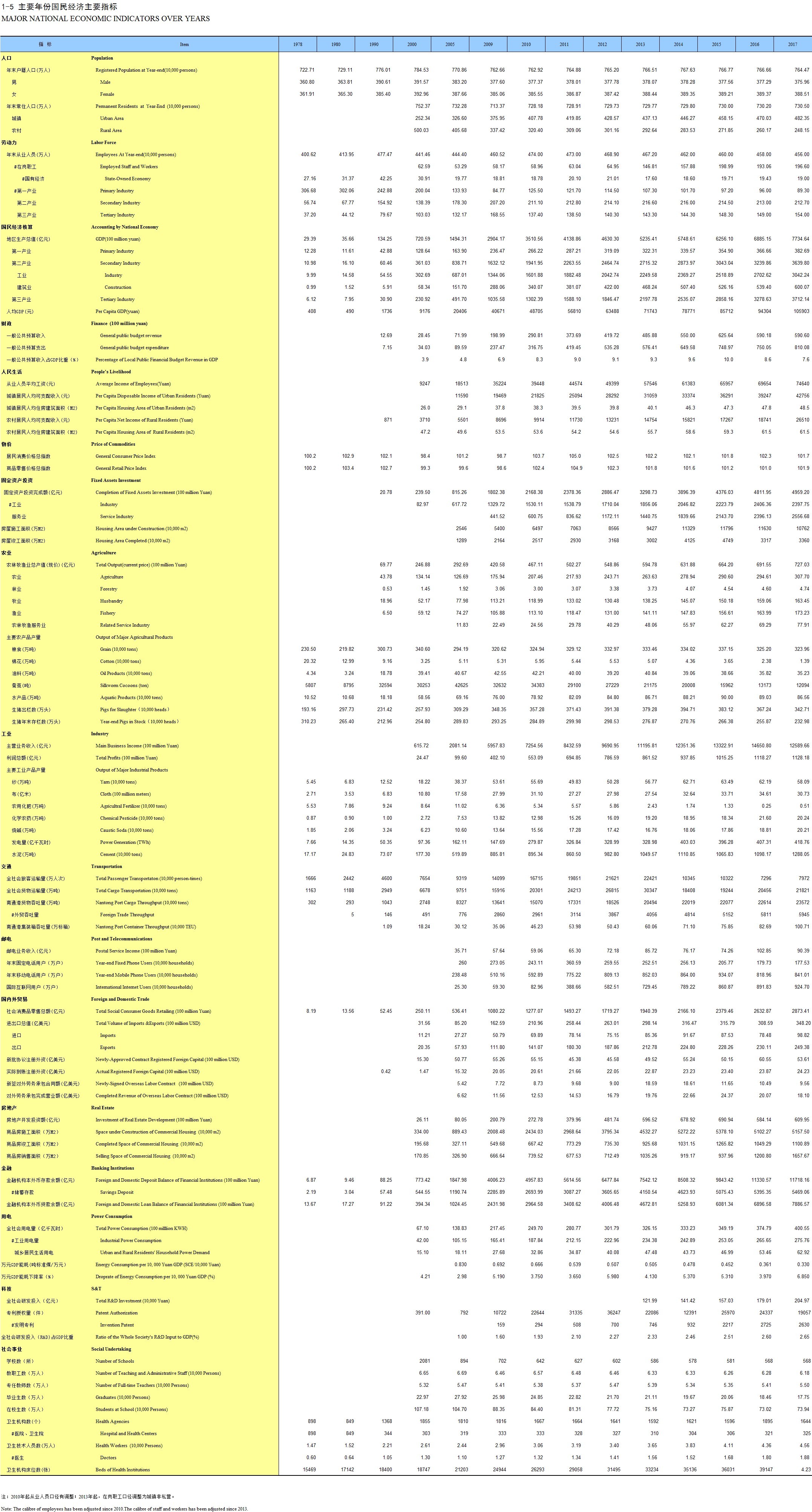 1-5 主要年份国民经济主要指标