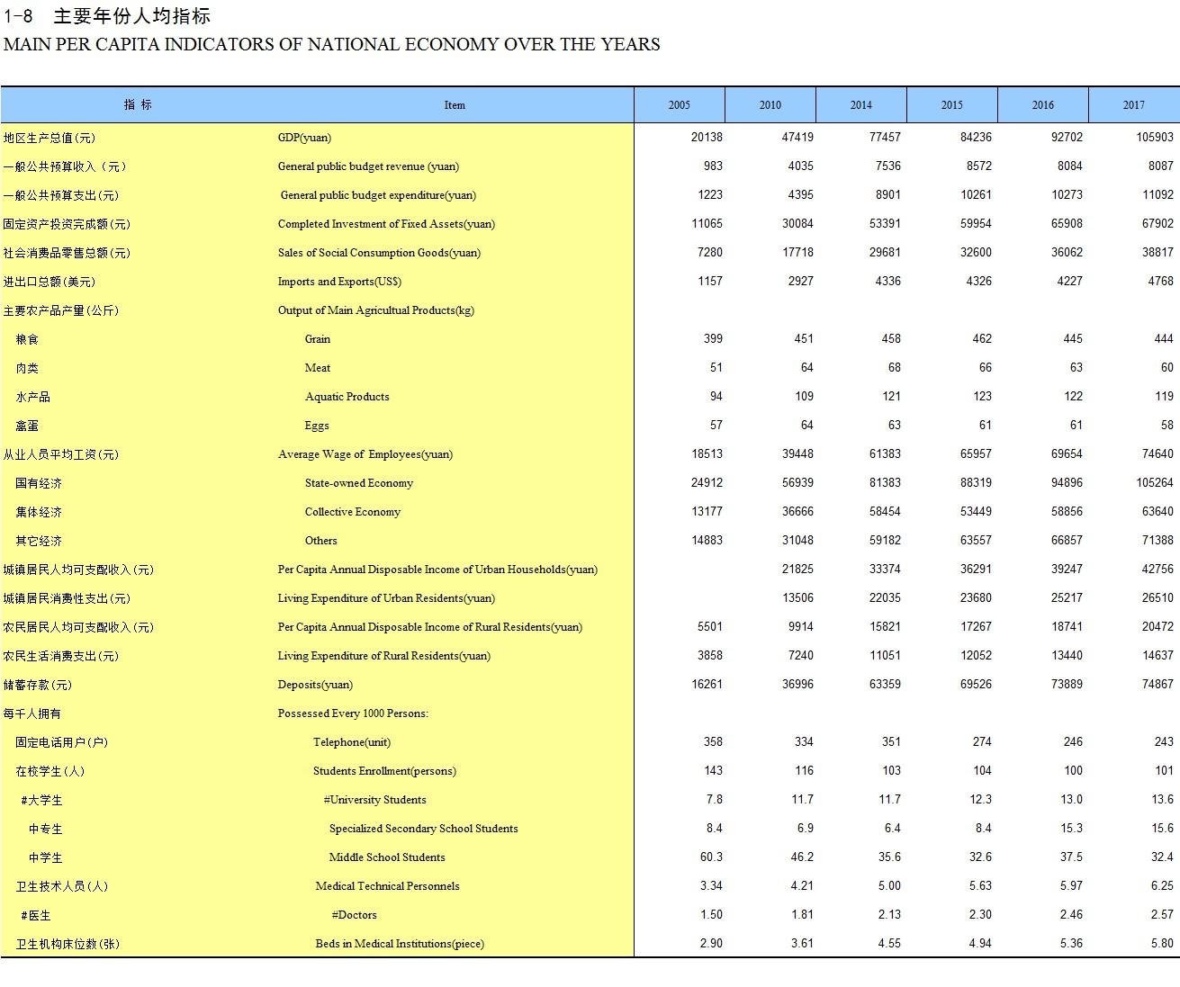 1-8 主要年份人均指标