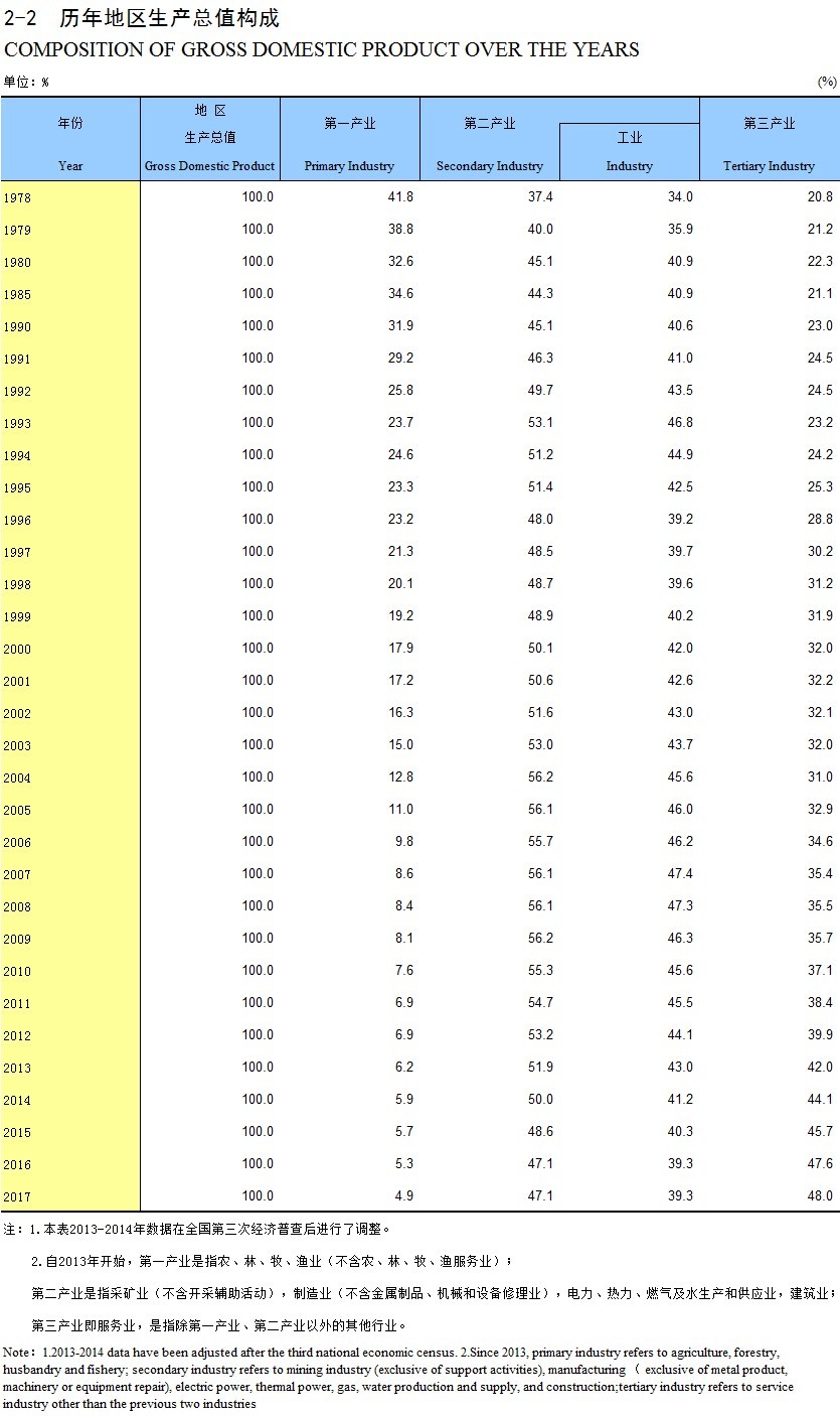 2-2 历年地区生产总值构成