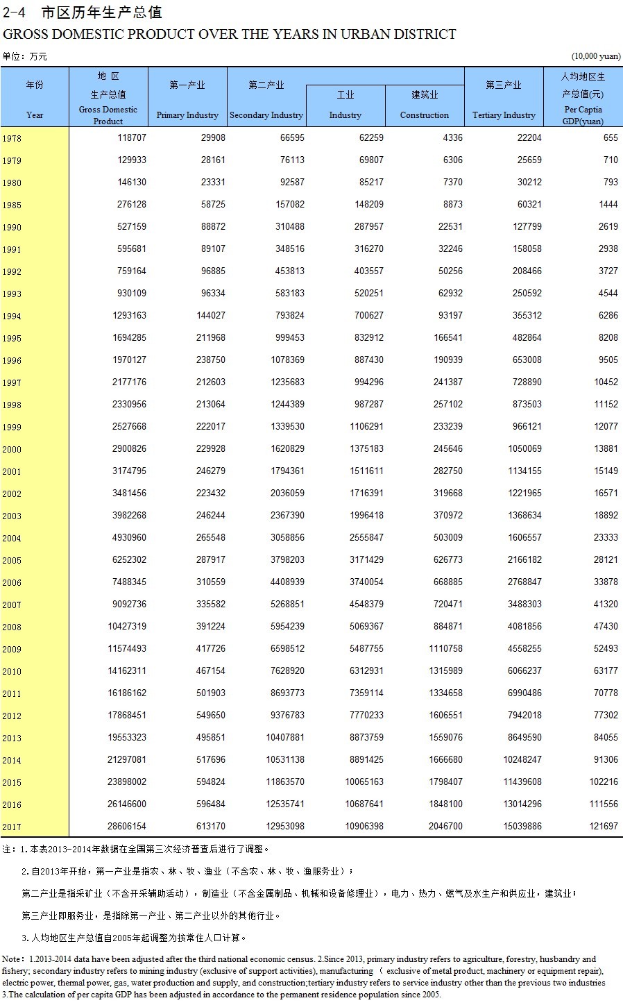 2-4 市区历年生产总值