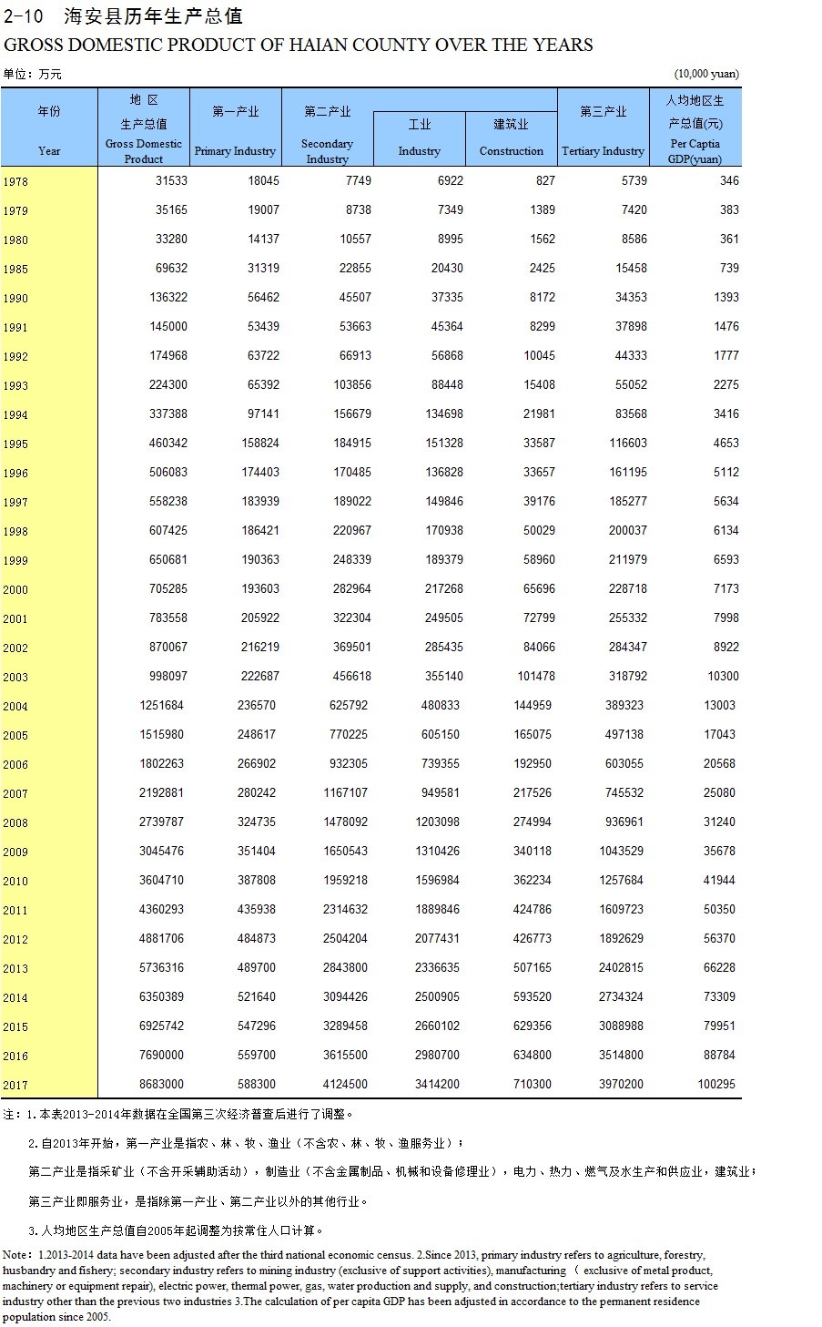 2-10 海安县历年生产总值
