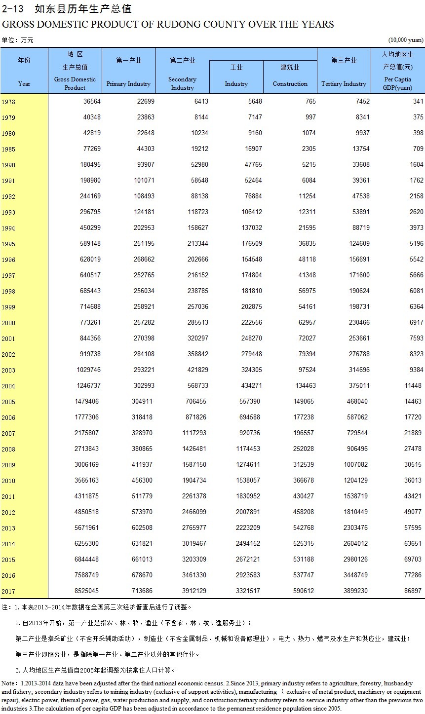 2-13 如东县历年生产总值