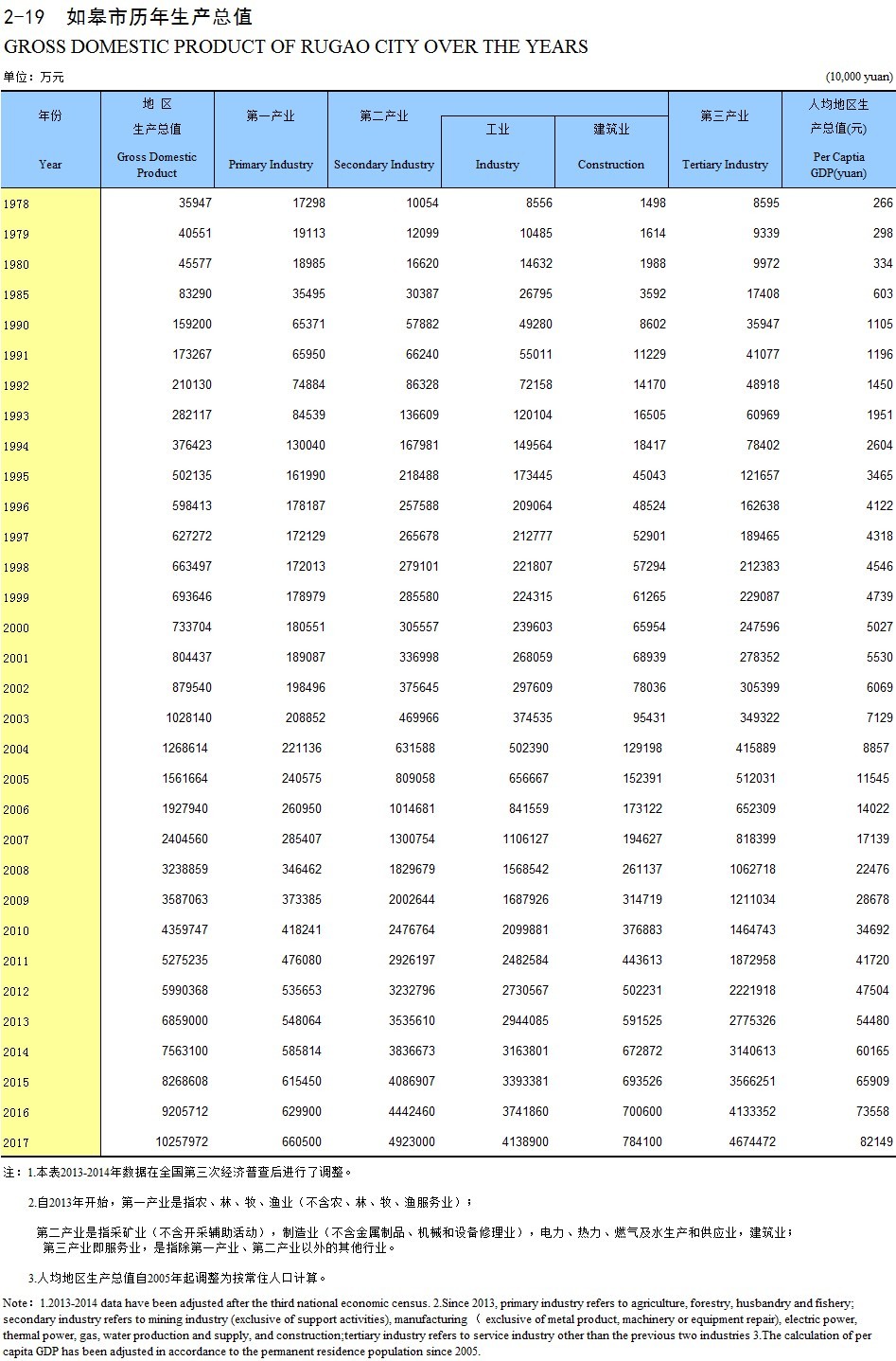 2-19 如皋市历年生产总值