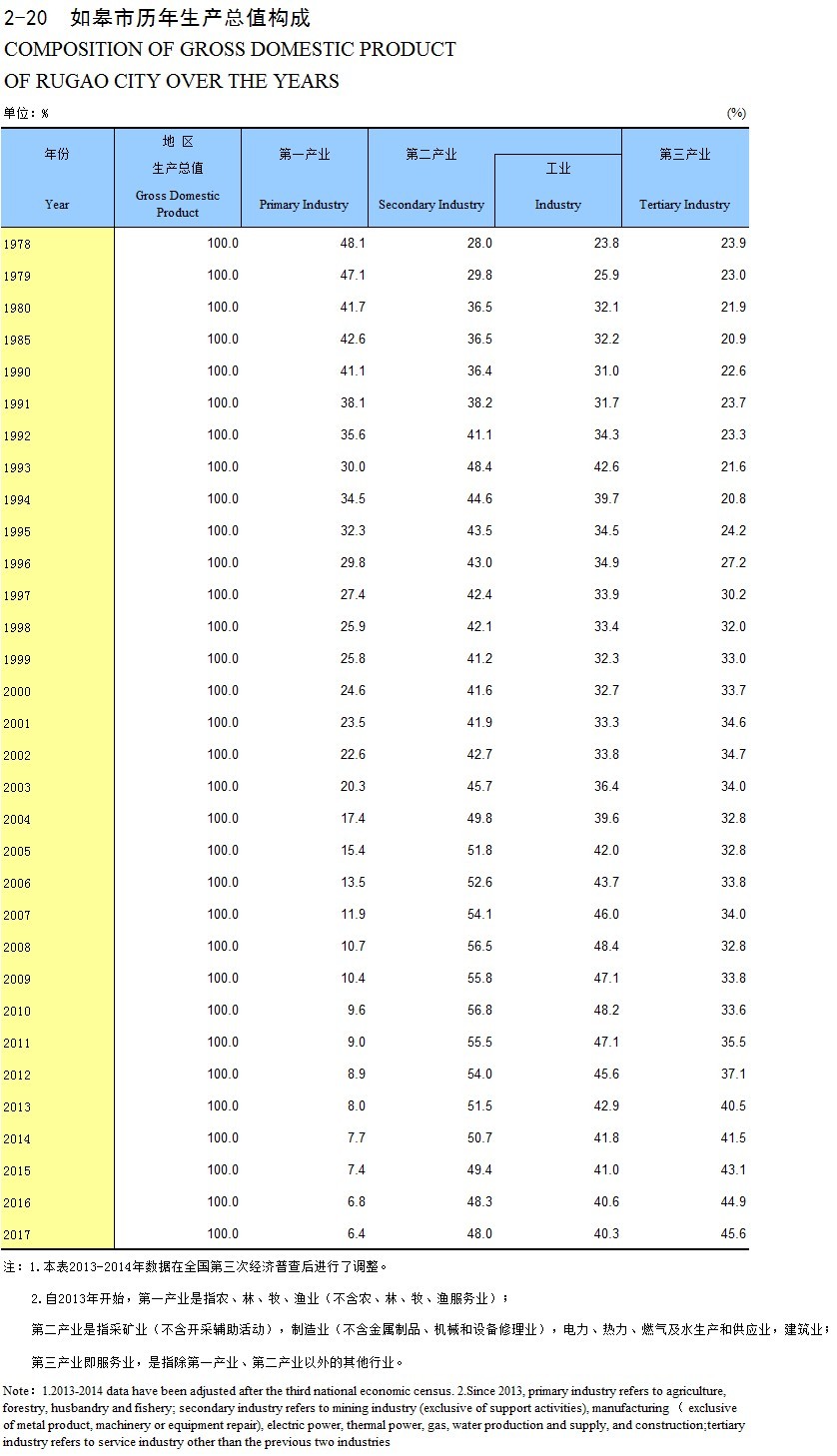 2-20 如皋市历年生产总值构成