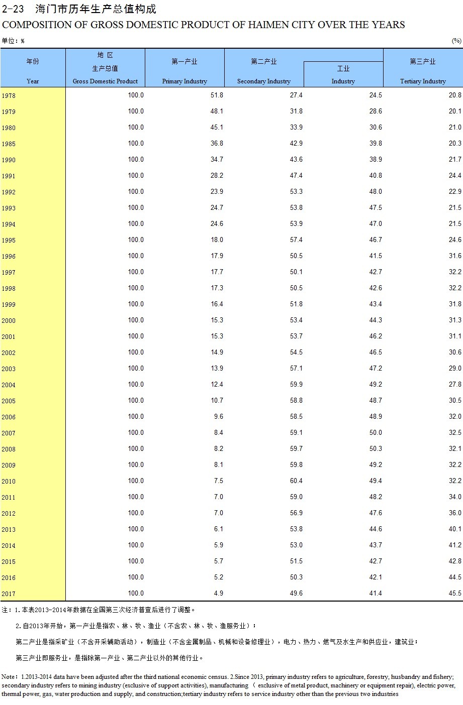 2-23 海门市历年生产总值构成
