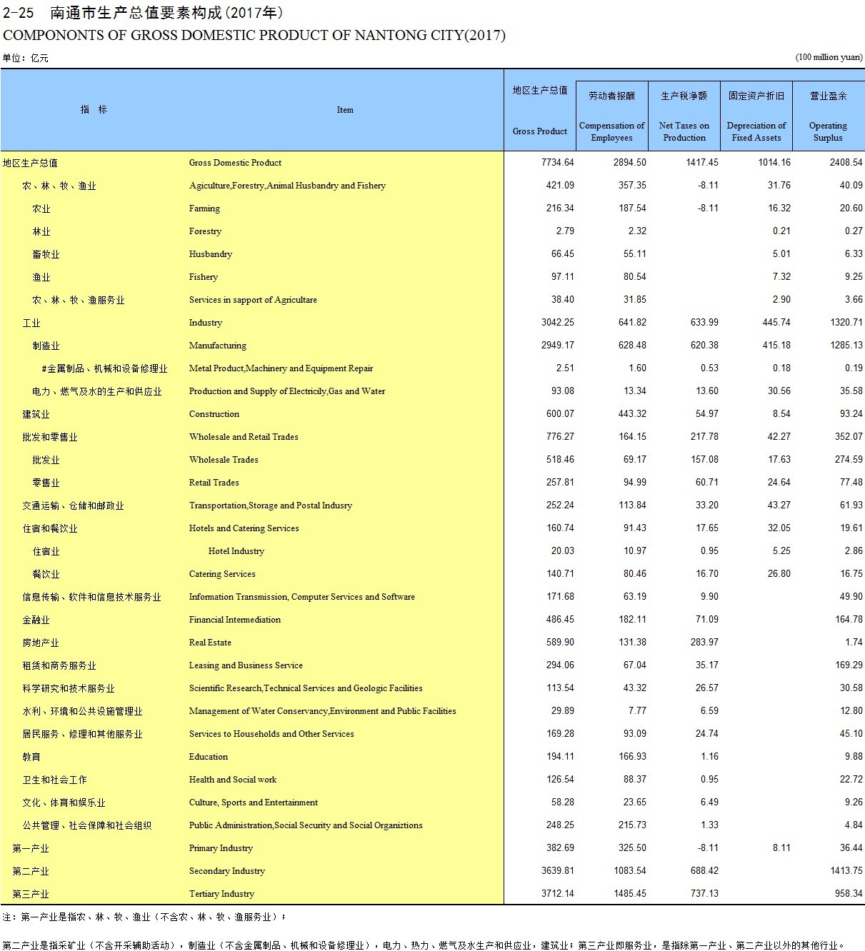 2-25 南通市生产总值要素构成(2017年)