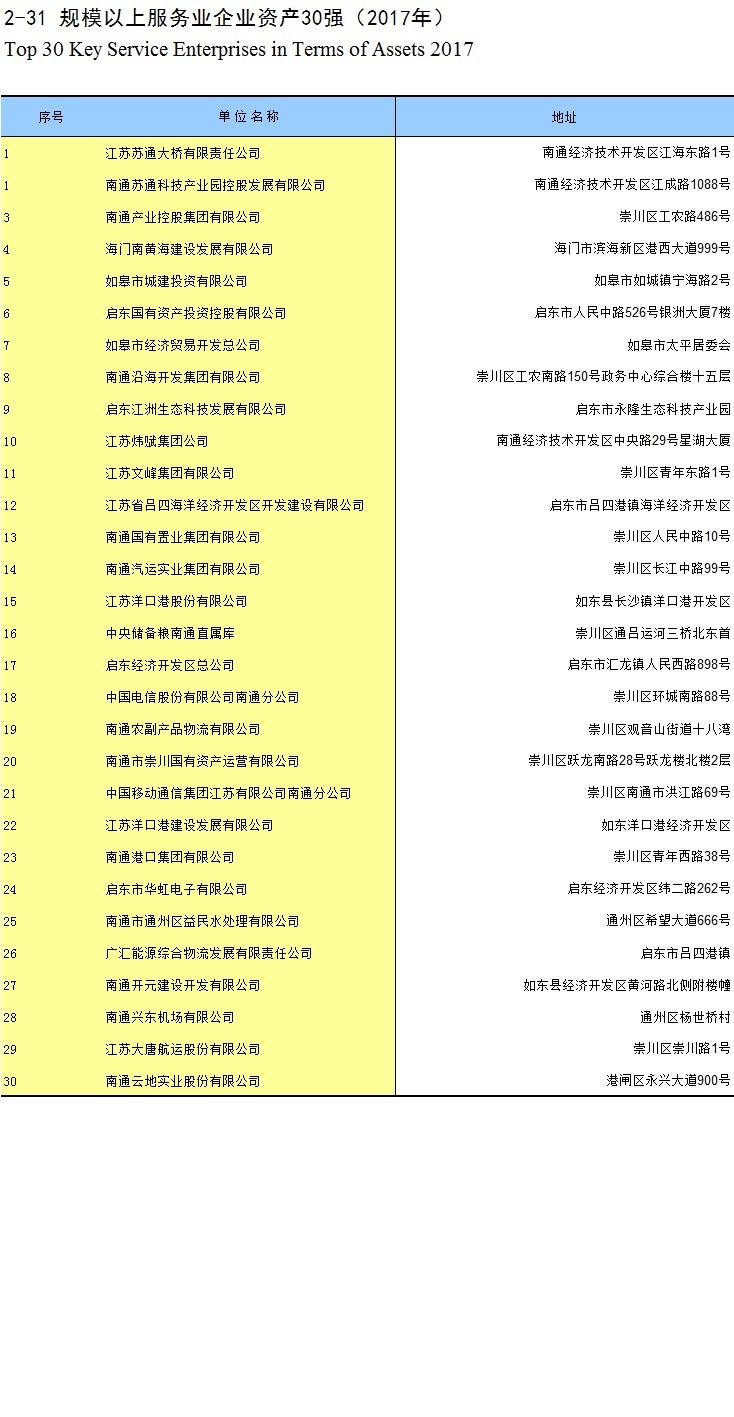 2-31 规模以上服务业企业资产30强(2017年)