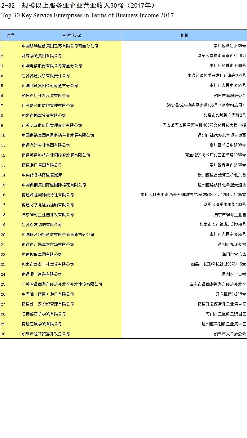 2-32 规模以上服务业企业营业收入30强(2017年)