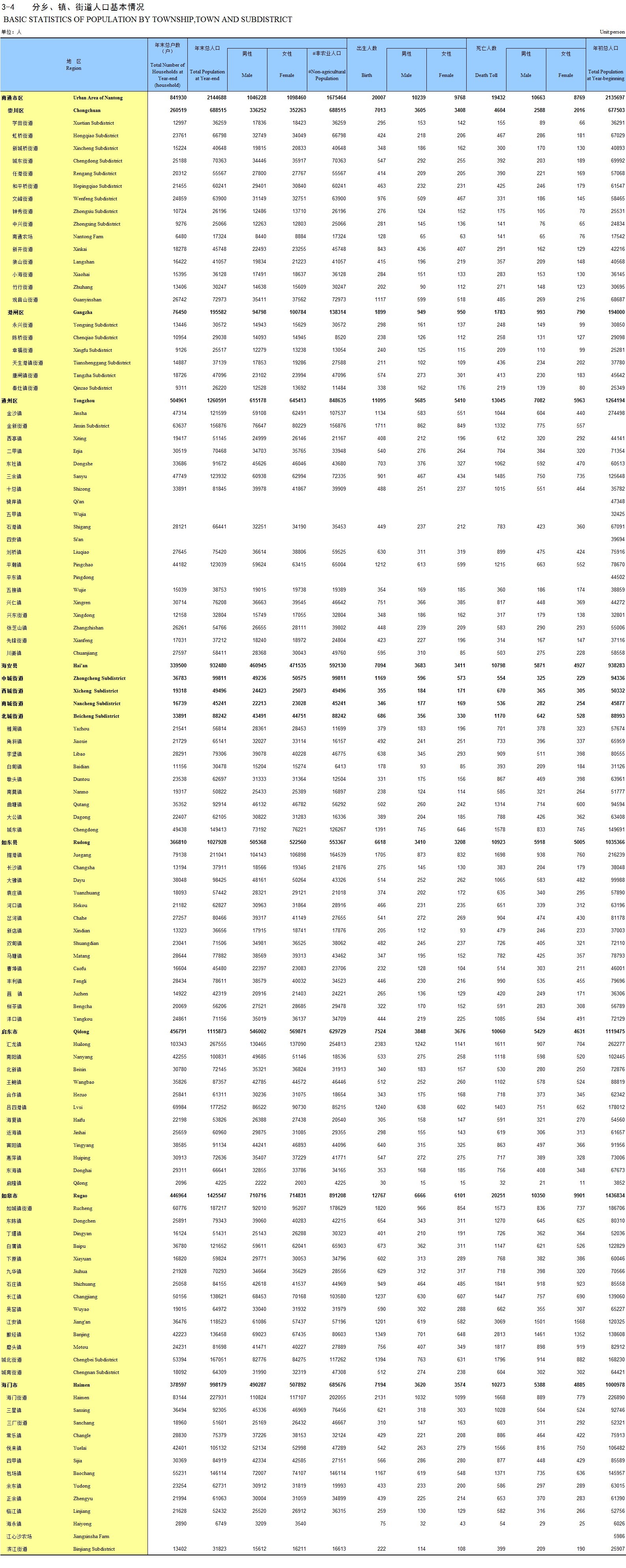 3-4 分乡、镇、街道人口基本情况
