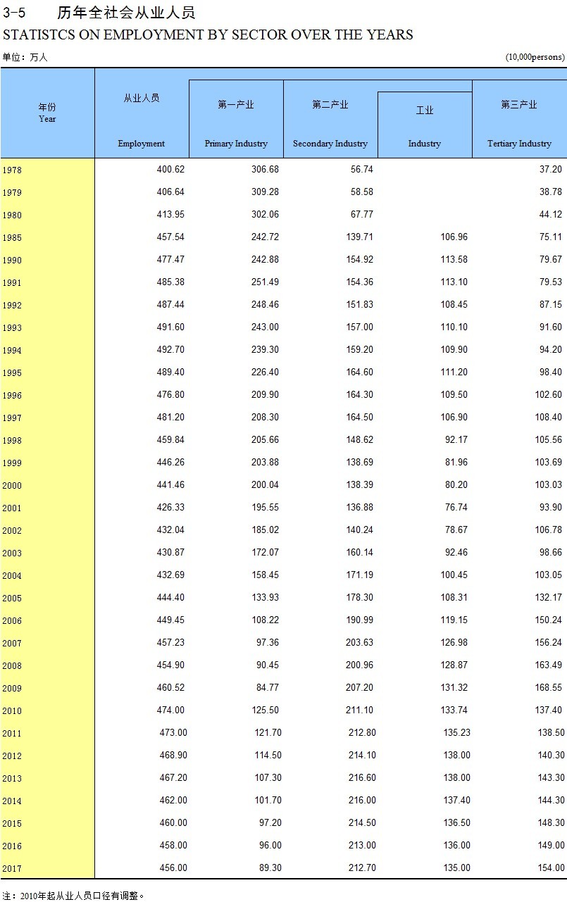 3-5 历年全社会从业人员