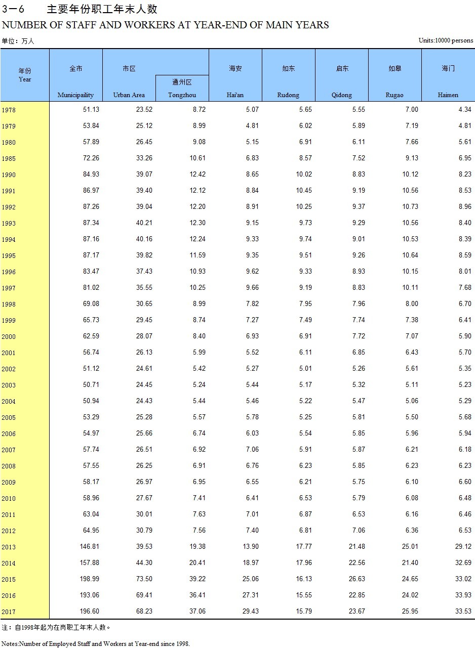 3-6 主要年份职工年末人数