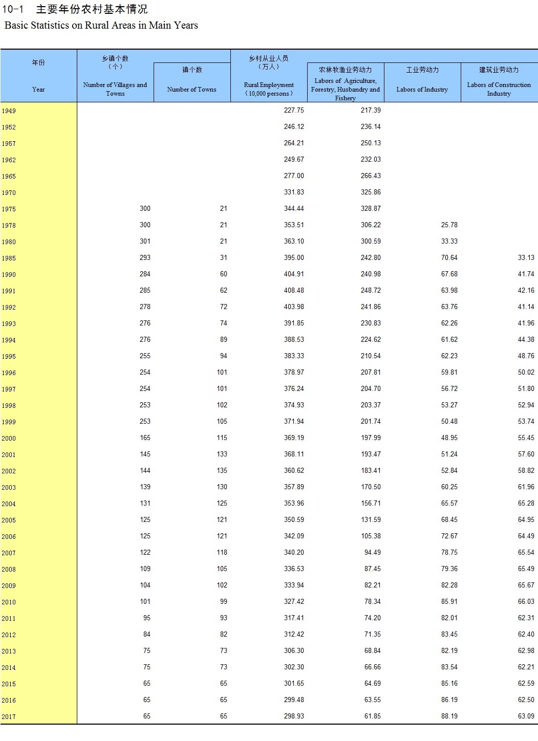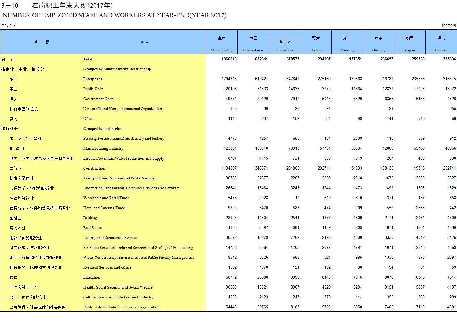 3-10 在岗职工年末人数(2017年)