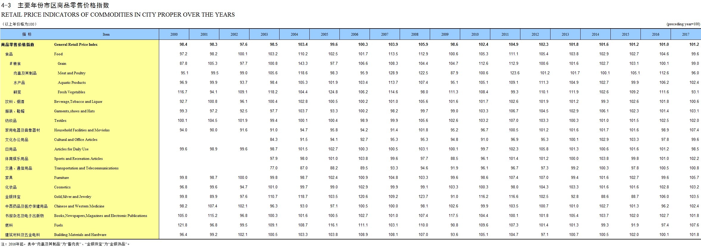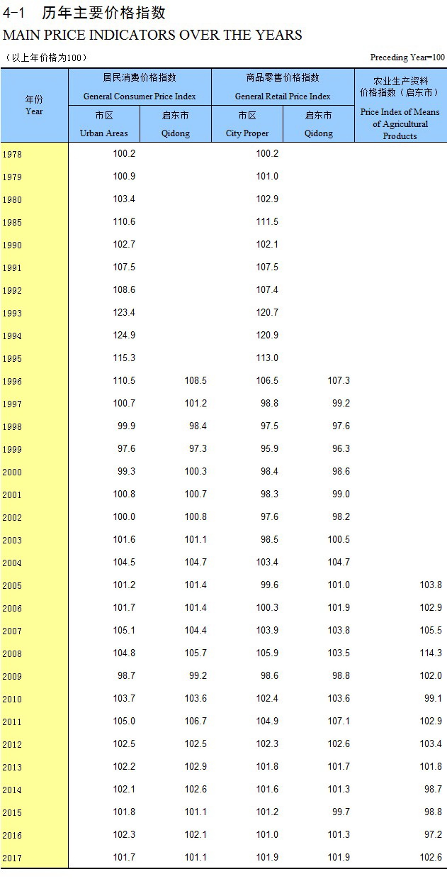 4-1 历年主要价格指数