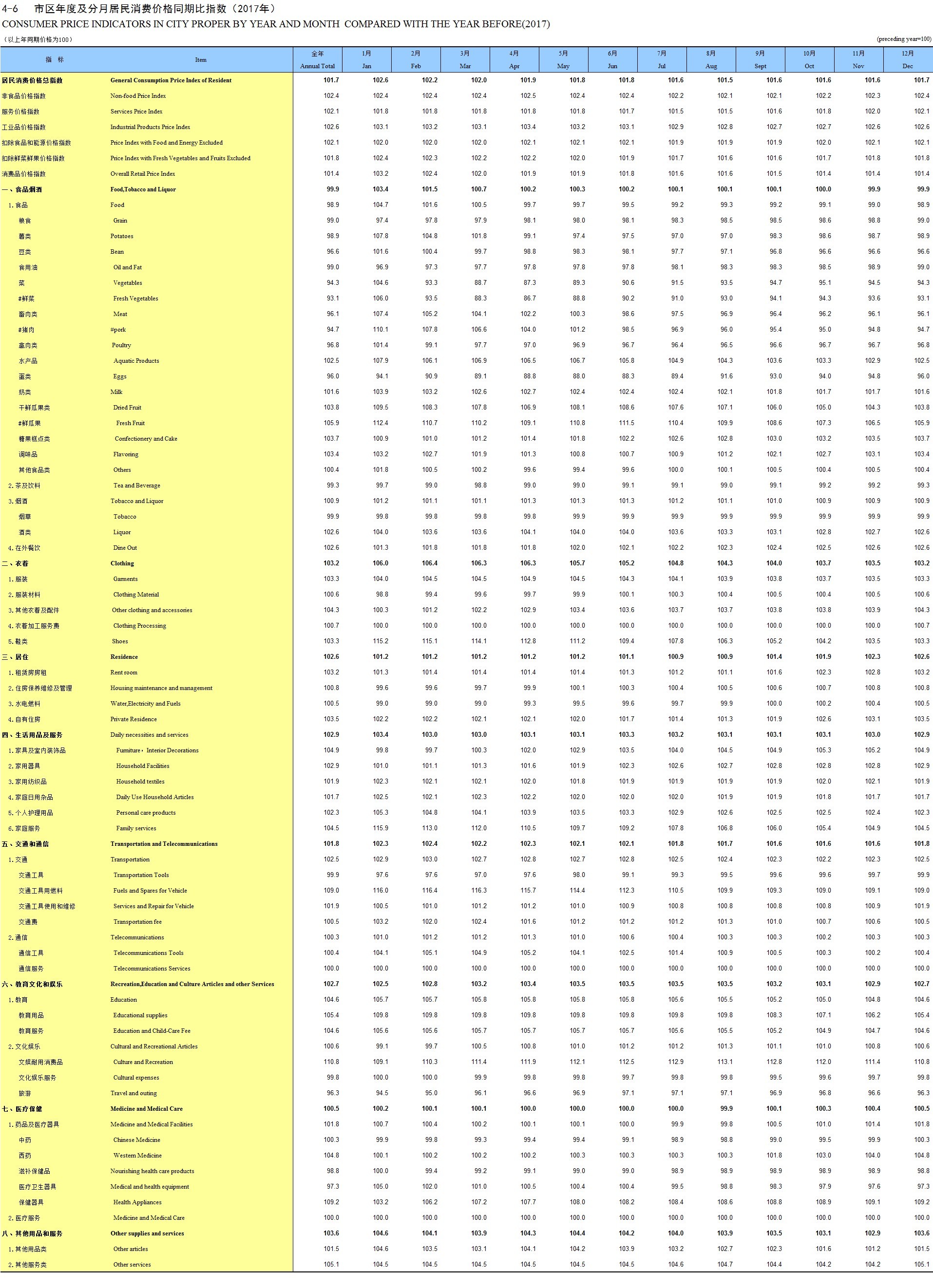 4-2 历年市区居民消费价格总指数及分类指数