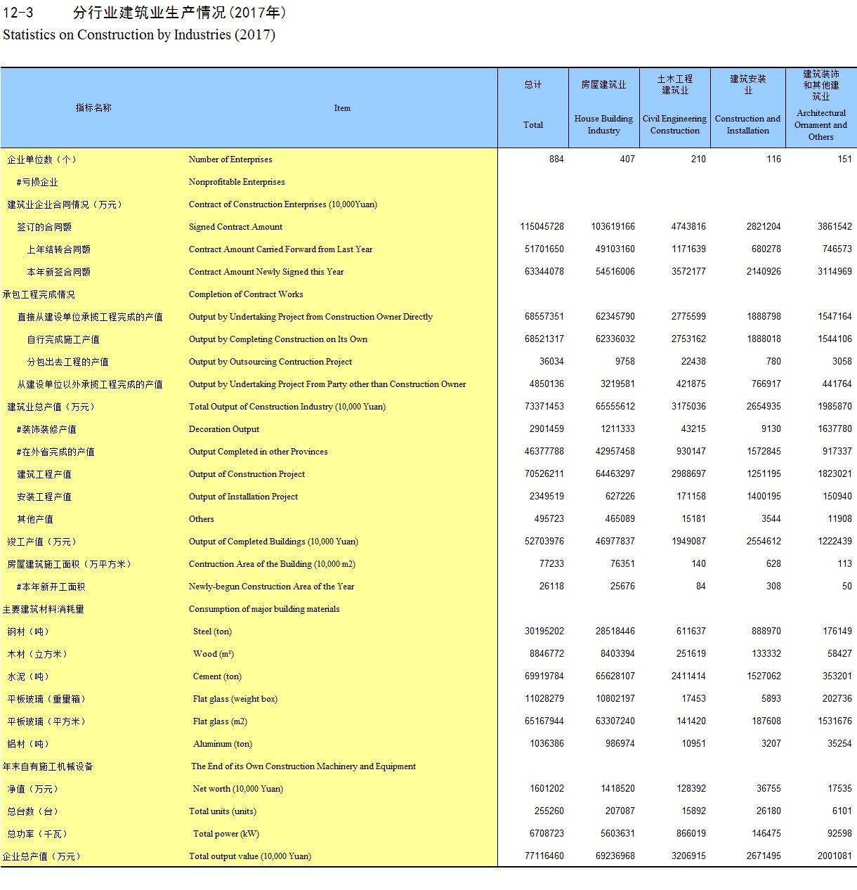 12-3 分行业建筑业生产情况(2017年)