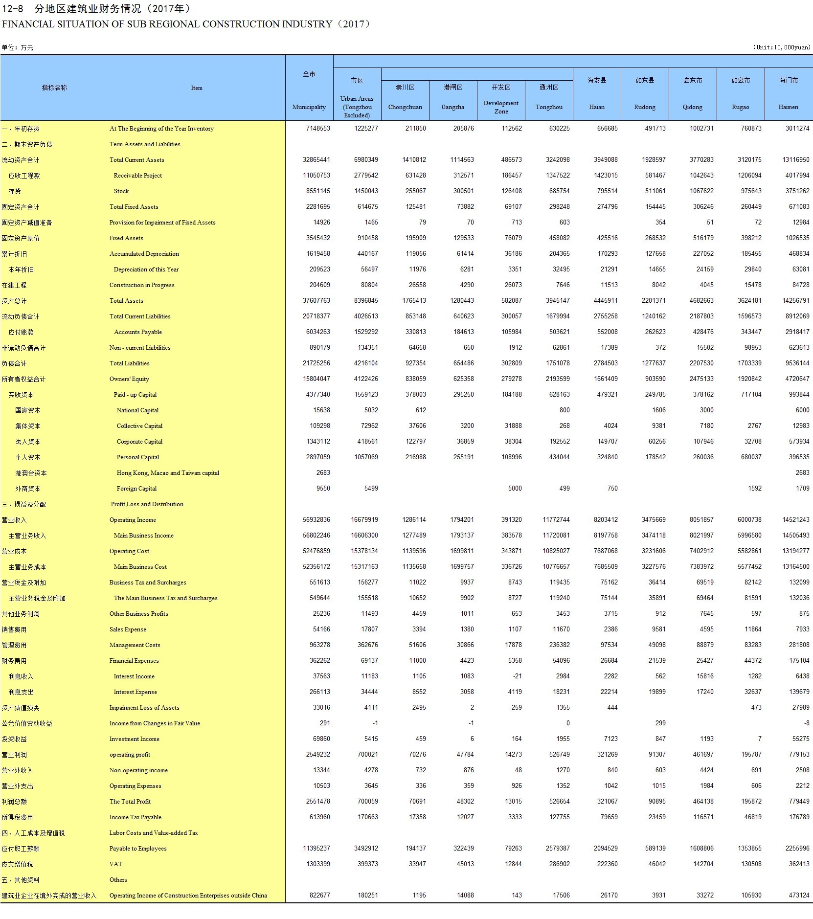 12-8 分地区建筑业财务情况(2017年)