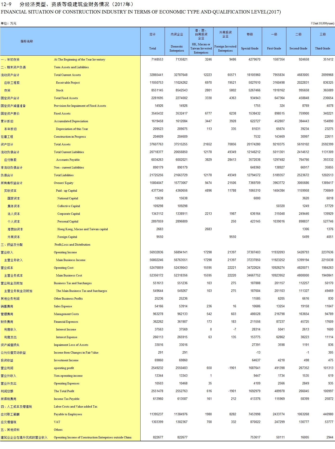 12-9 分经济类型、资质等级建筑业财务情况(2017年)