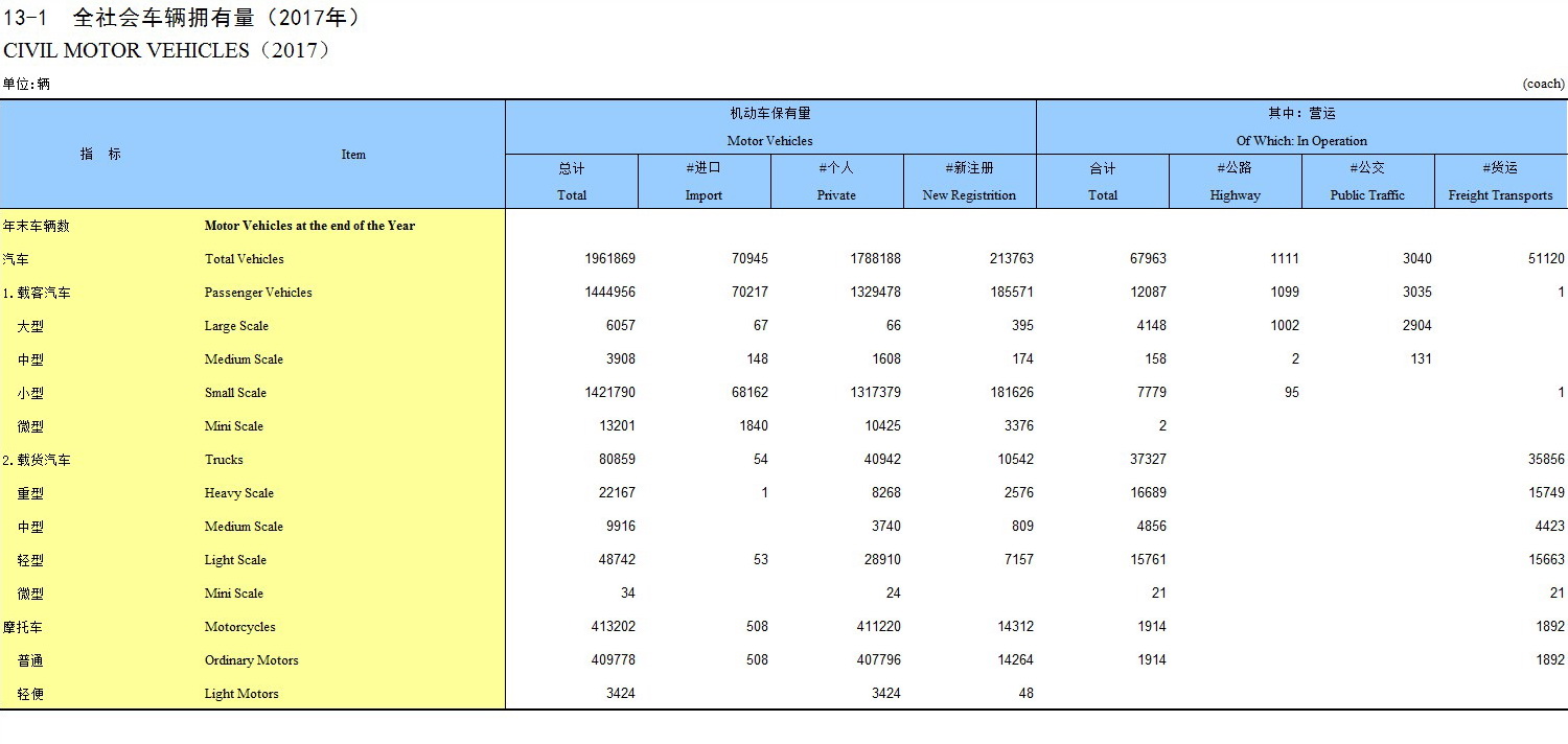 13-1 全社会车辆拥有量(2017年)