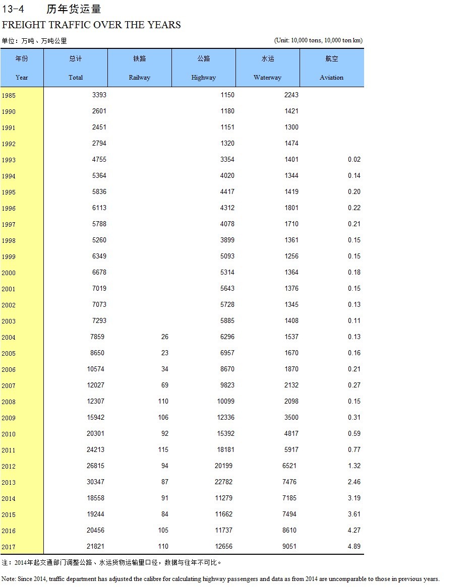 13-4 历年货运量