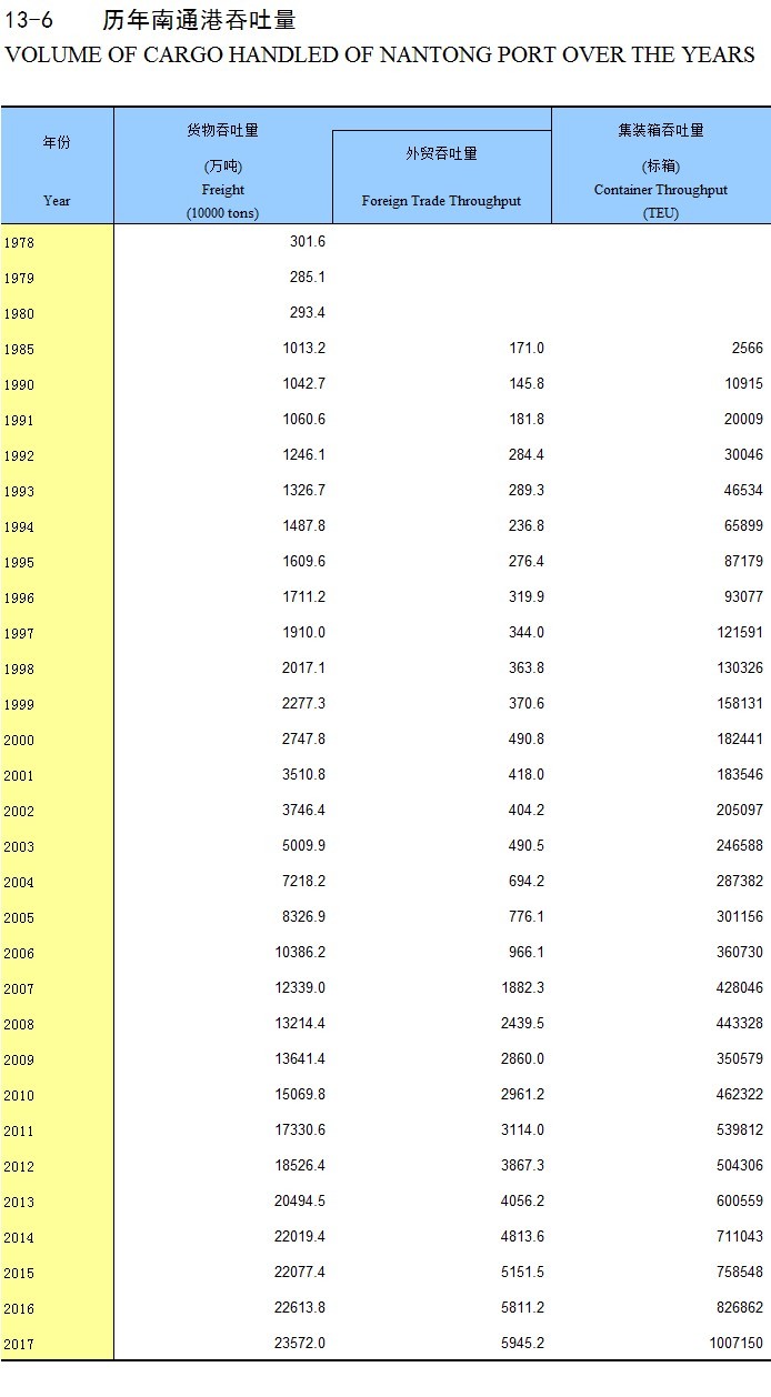 13-6 历年南通港吞吐量