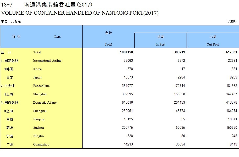 13-7 南通港集装箱吞吐量(2017)