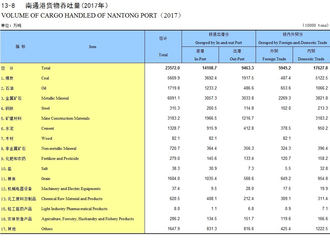 13-8 南通港货物吞吐量(2017年)