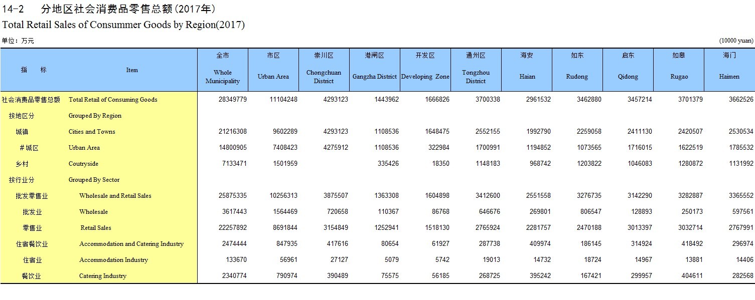 14-2 分地区社会消费品零售总额(2017年)