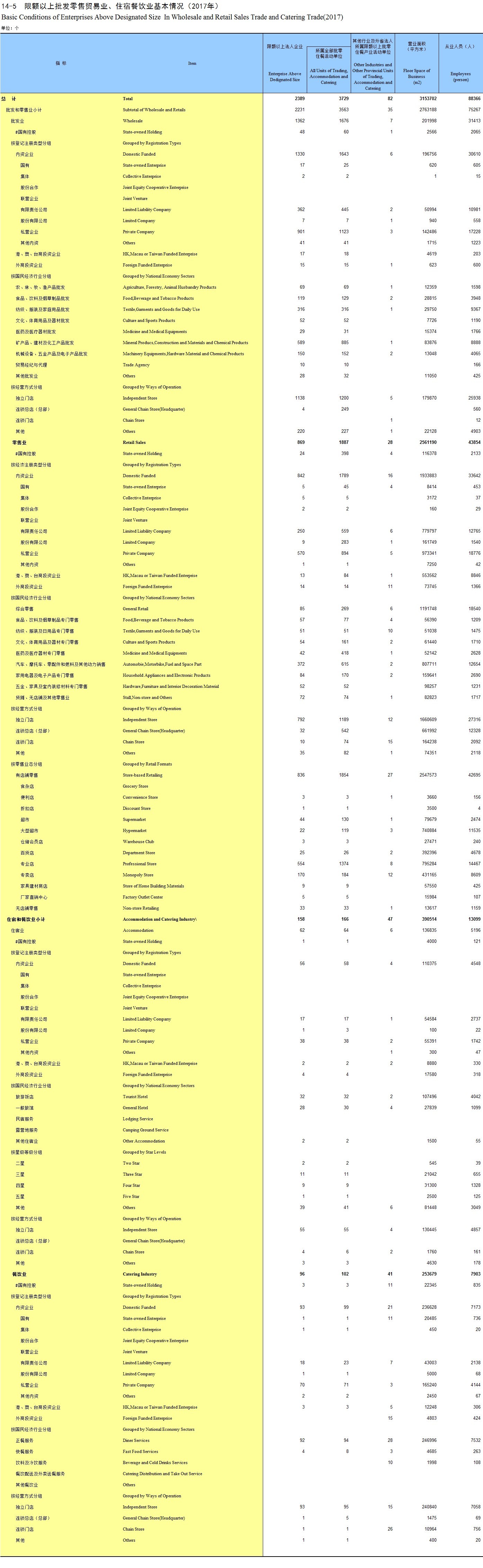 14-5 限额以上批发零售贸易业、住宿餐饮业基本情况(2017年)