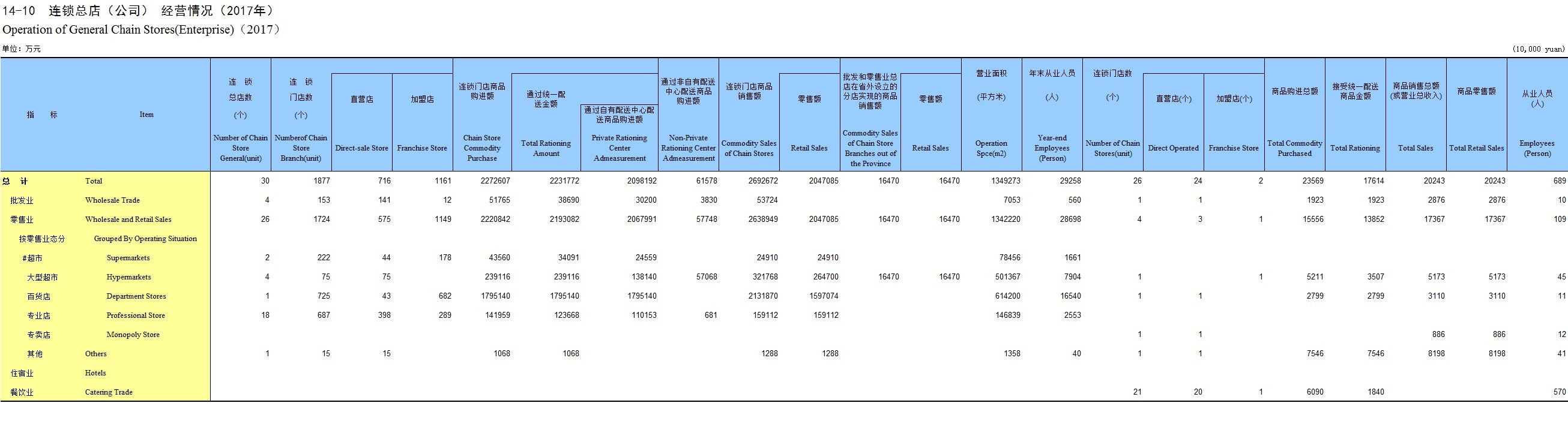 14-10 连锁总店(公司) 经营情况(2017年)