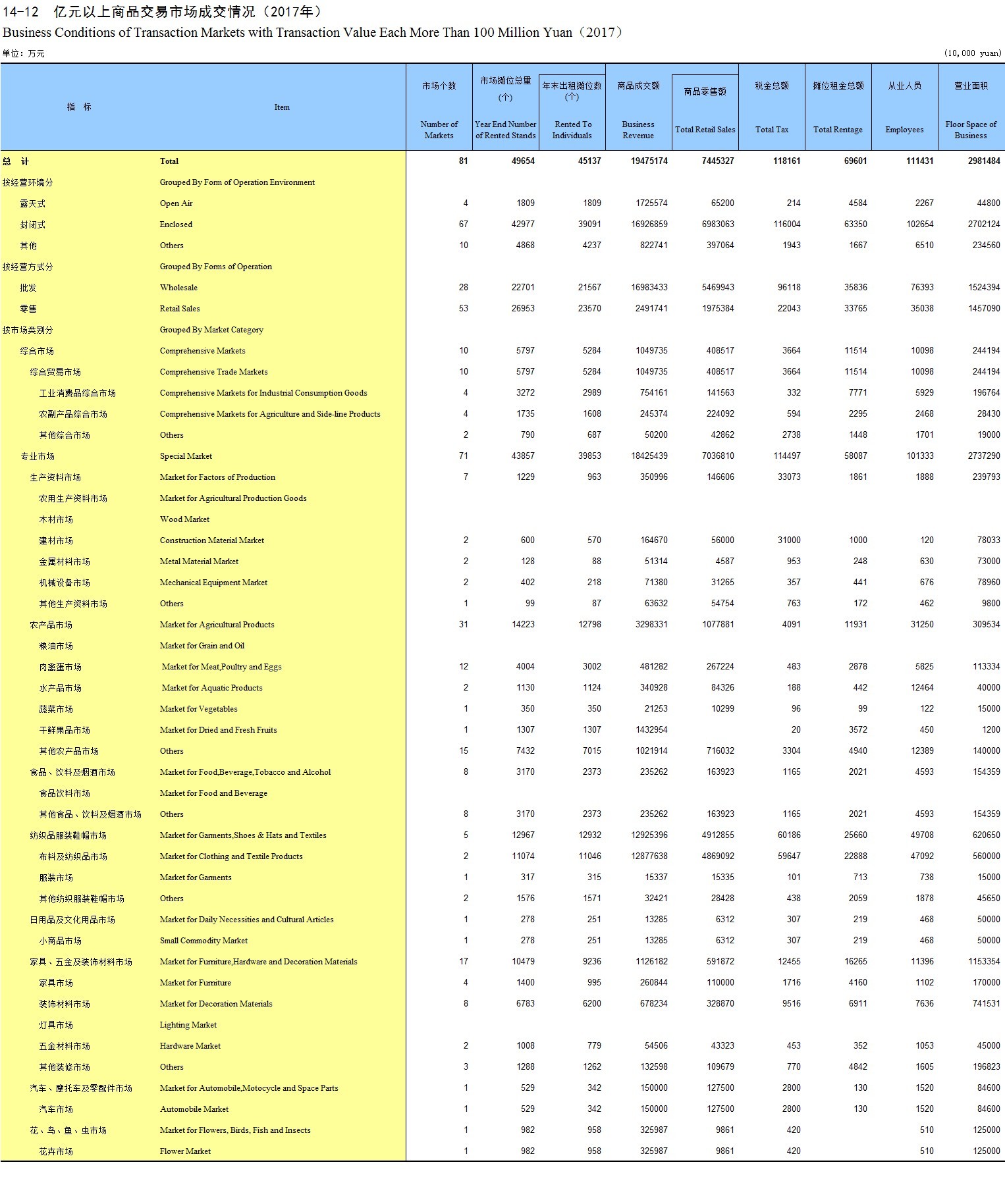 14-12 亿元以上商品交易市场成交情况(2017年)