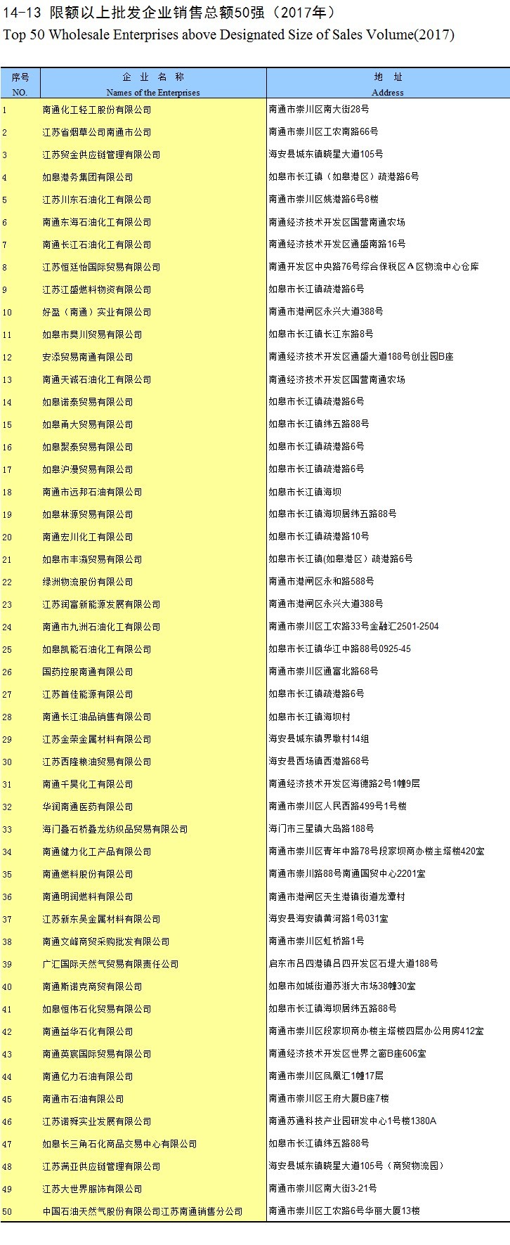 14-13 限额以上批发企业销售总额50强(2017年)