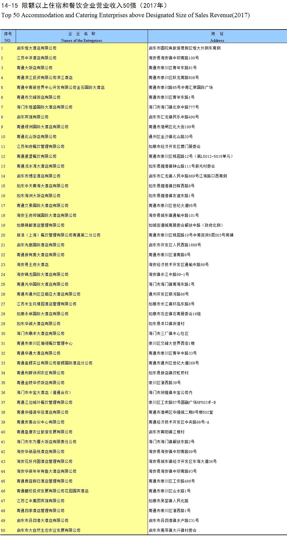 14-15 限额以上住宿和餐饮企业营业收入50强(2017年)