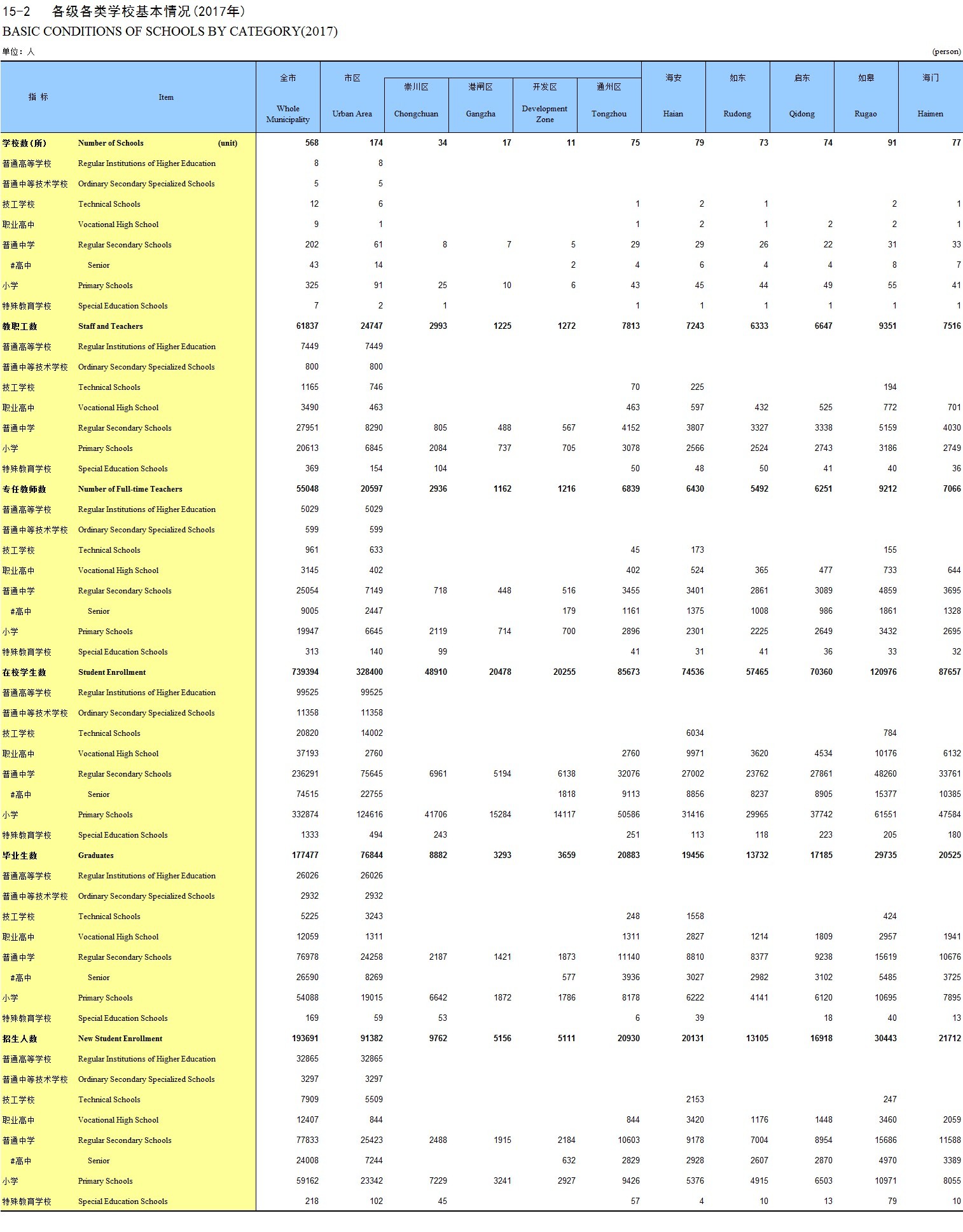 15-2 各级各类学校基本情况(2017年)