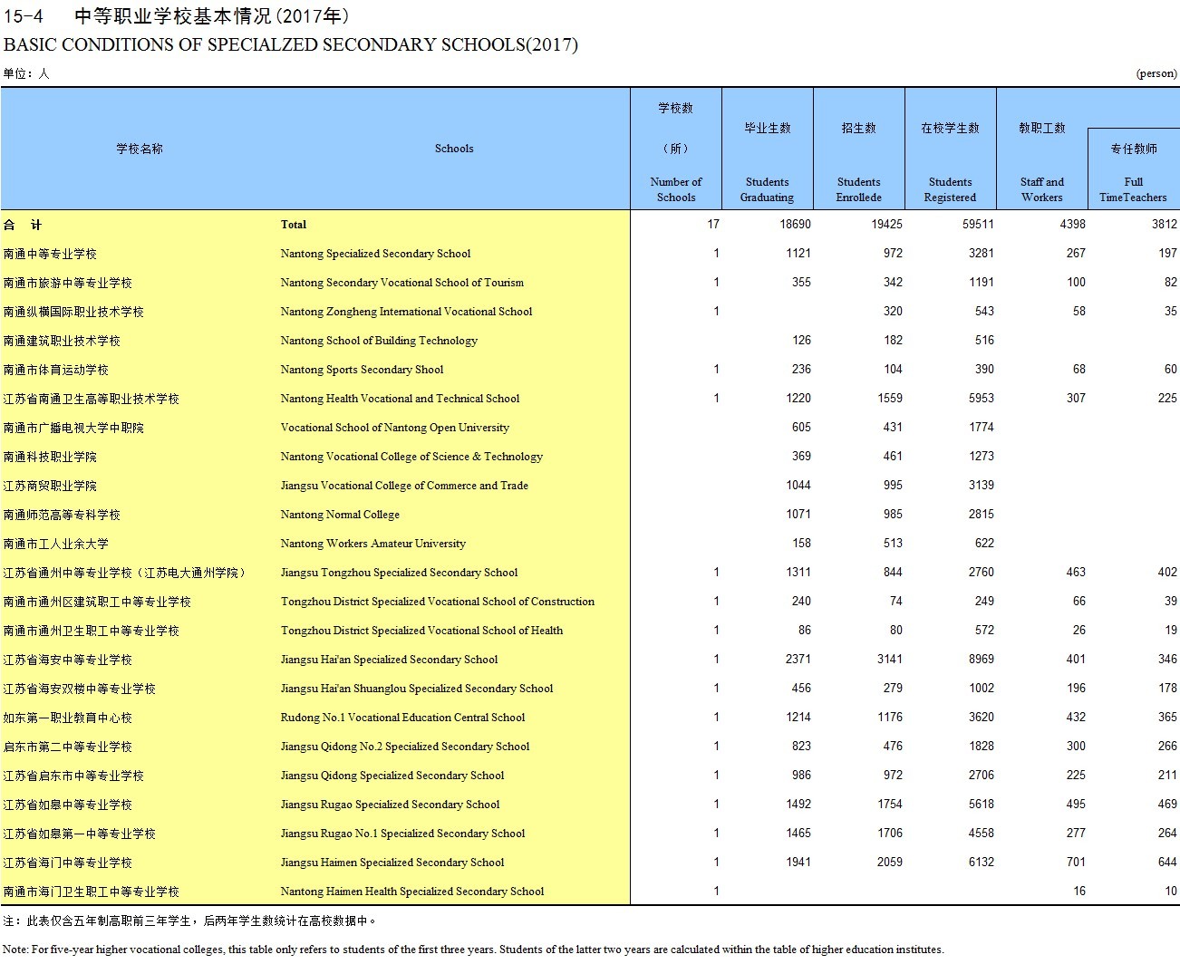 15-4 中等职业学校基本情况(2017年)