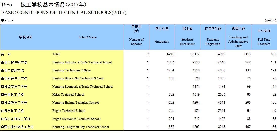 15-5 技工学校基本情况(2017年)