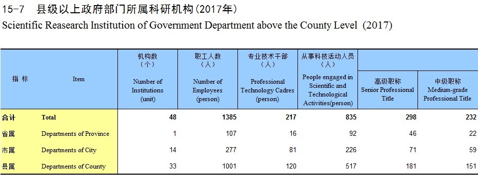 15-7 县级以上政府部门所属科研机构(2017年)
