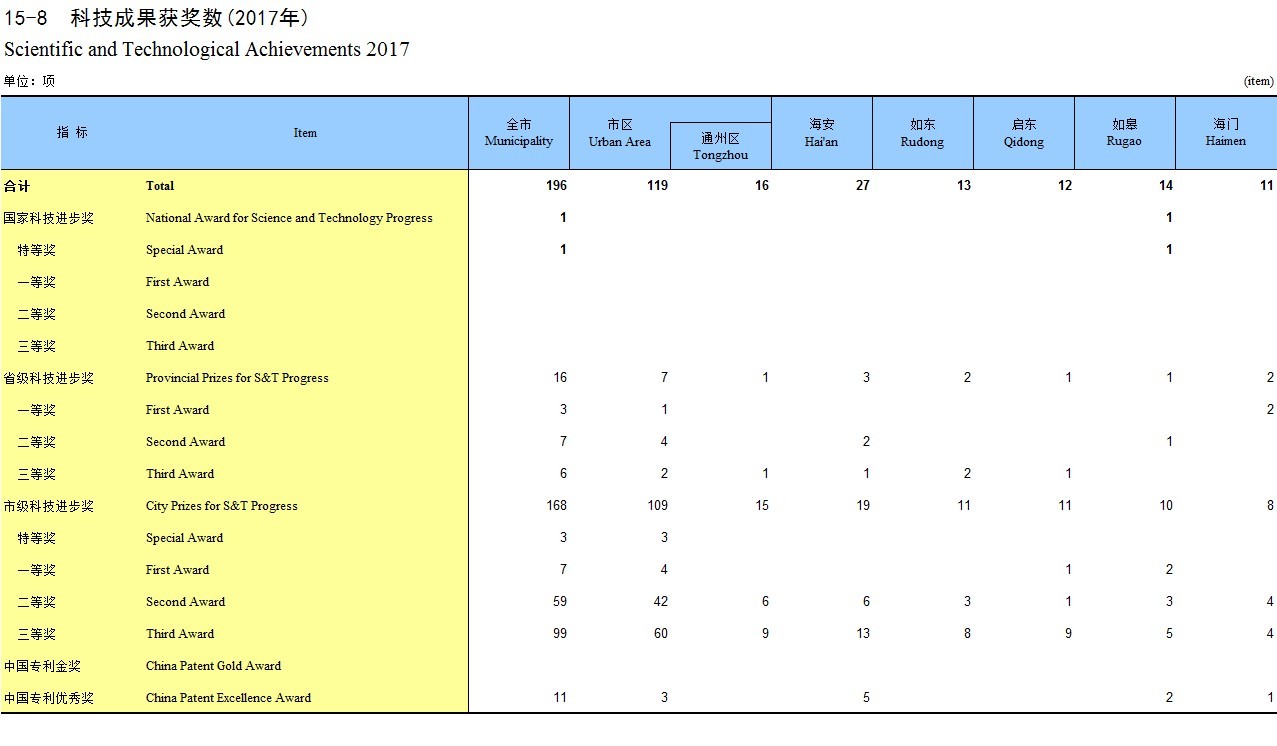15-8 科技成果获奖数(2017年)