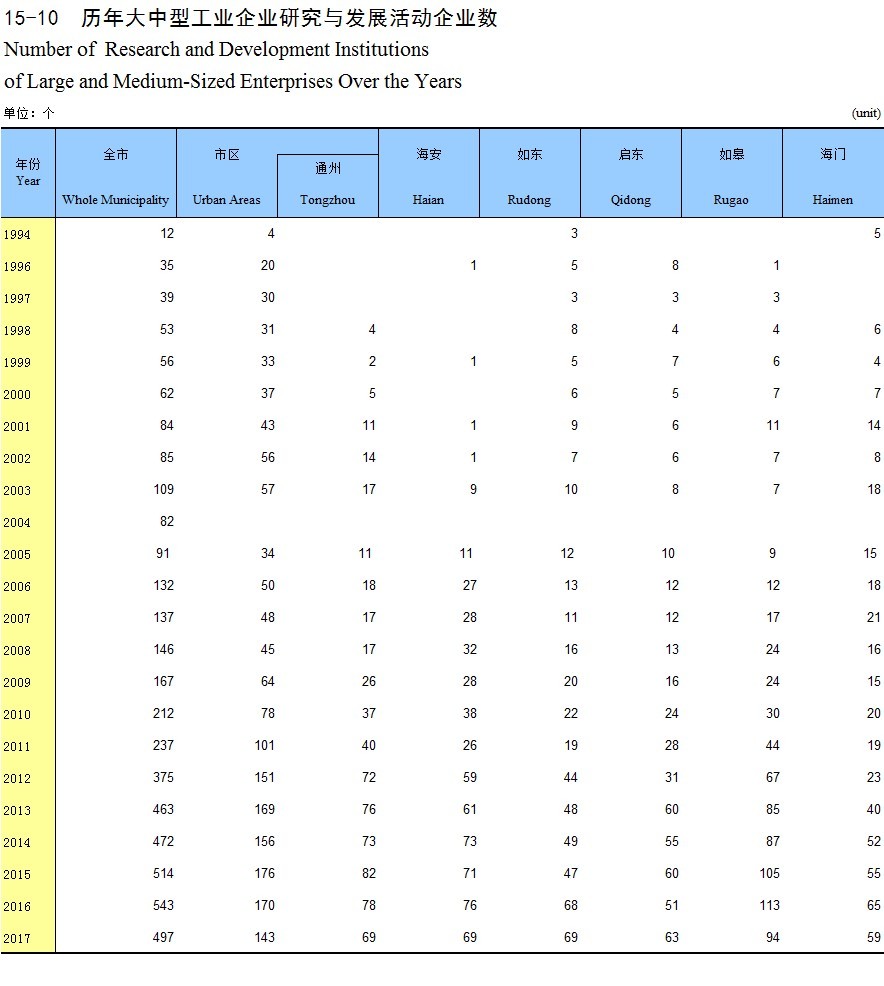 15-10 历年大中型工业企业研究与发展活动企业数