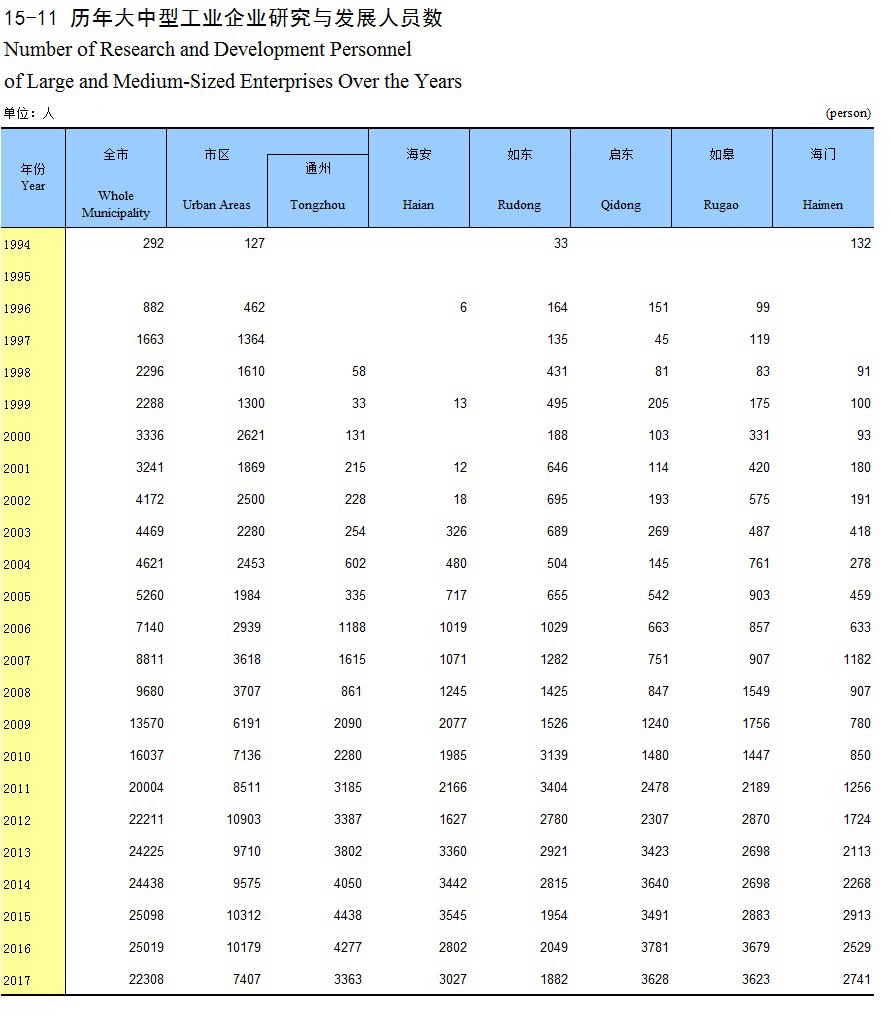 15-11 历年大中型工业企业研究与发展人员数