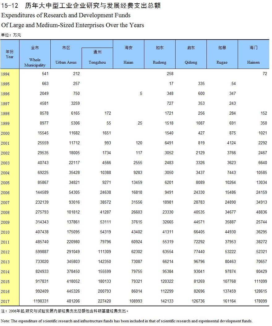 15-12 历年大中型工业企业研究与发展经费支出总额