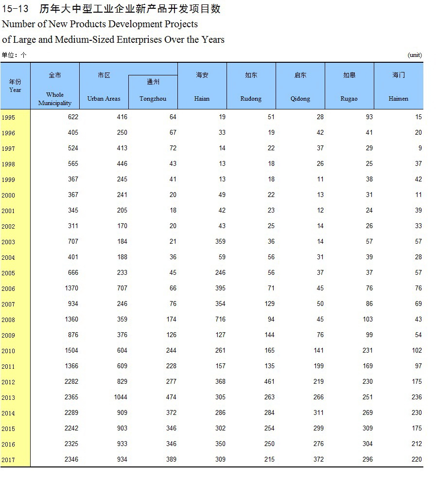 15-13 历年大中型工业企业新产品开发项目数