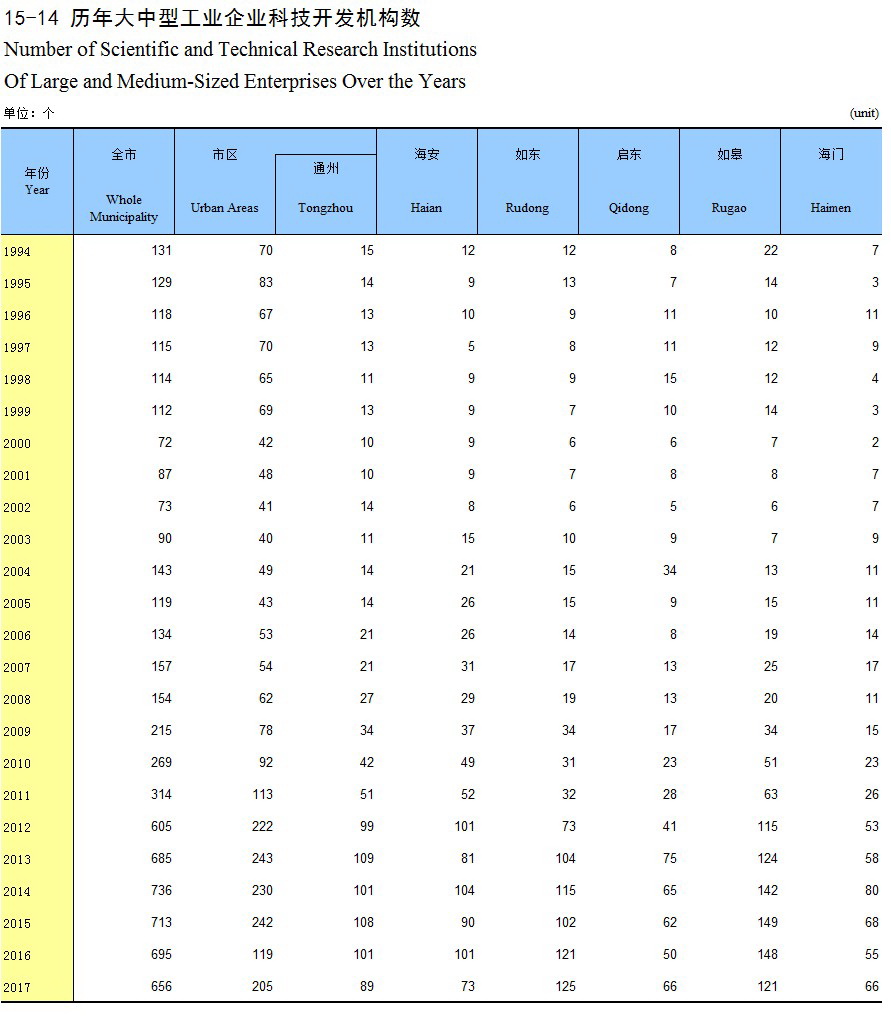 15-14 历年大中型工业企业科技开发机构数