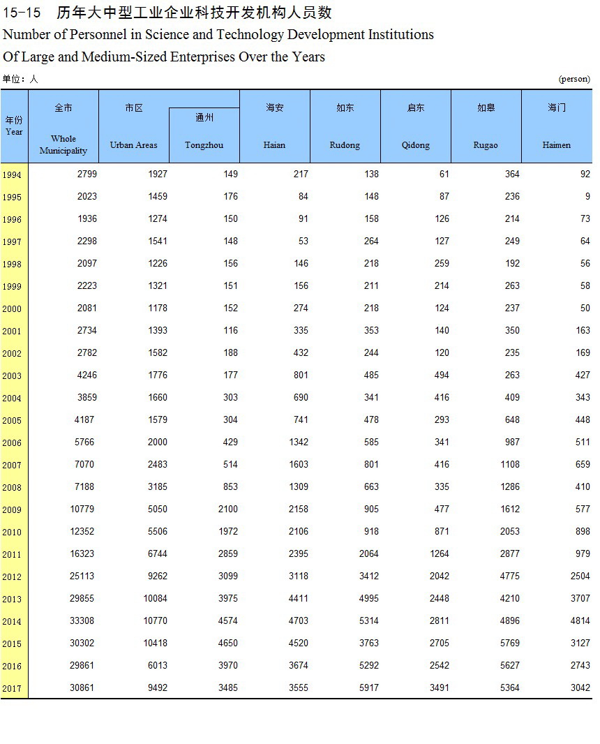 15-15 历年大中型工业企业科技开发机构人员数