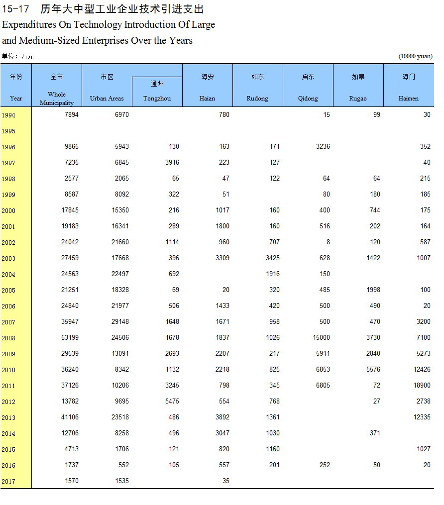 15-17 历年大中型工业企业技术引进支出