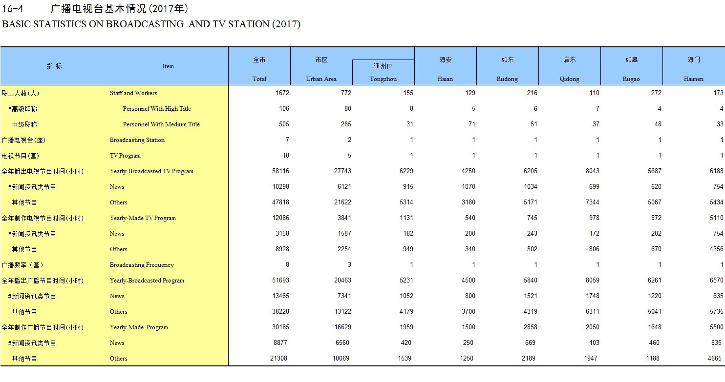 16-4 广播电视台基本情况(2017年)