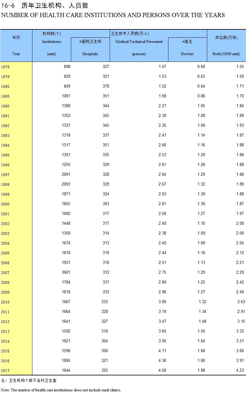 16-6 历年卫生机构、人员数