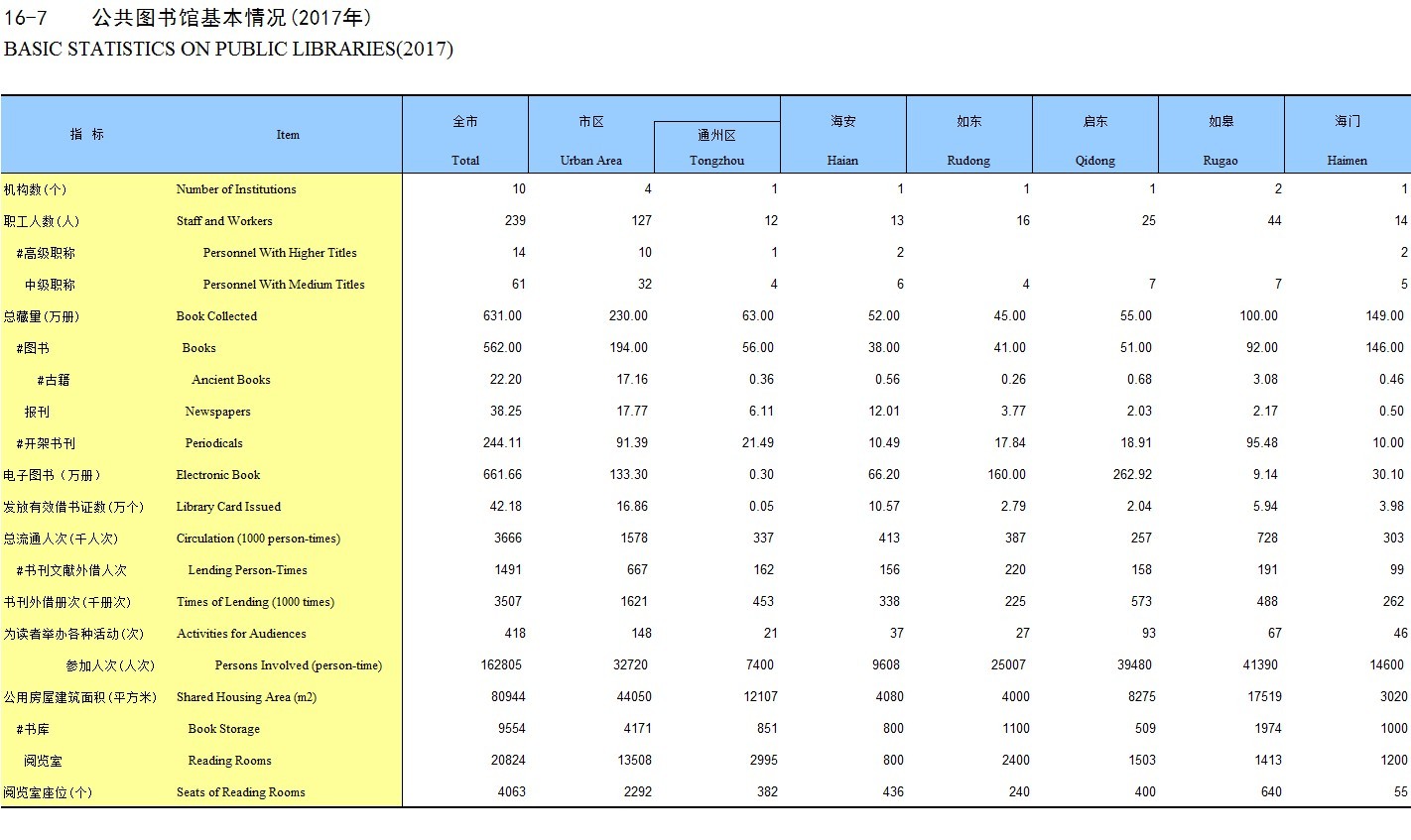 16-7 公共图书馆基本情况(2017年)