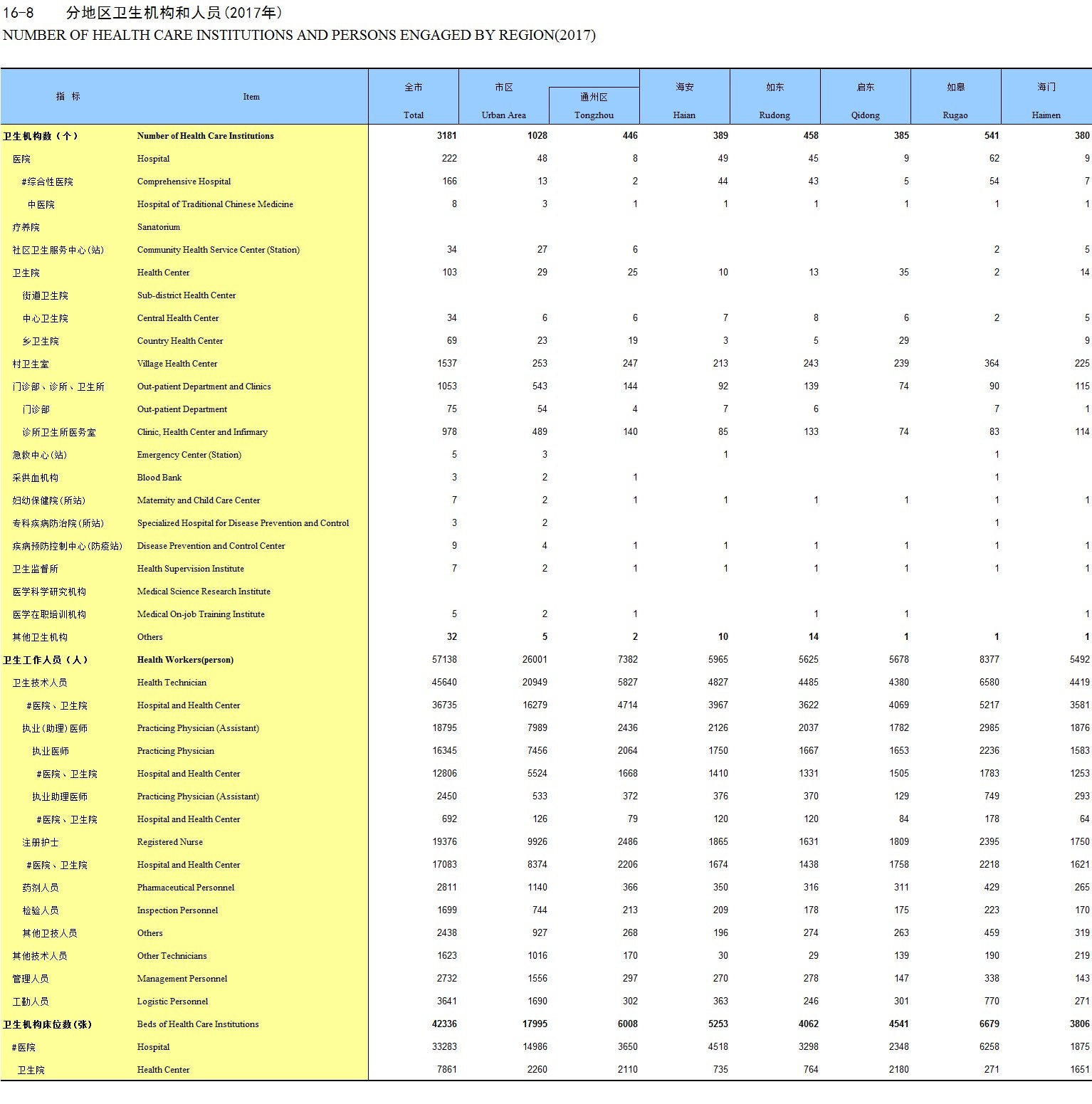 16-8 分地区卫生机构和人员(2017年)