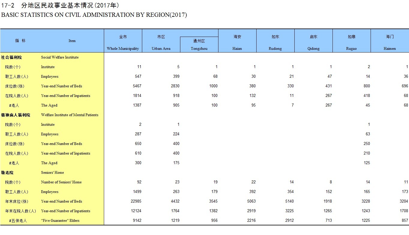17-2 分地区民政事业基本情况(2017年)